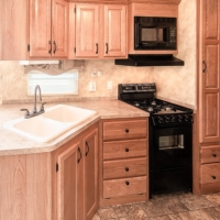 Cuisine complète avec four, cuisinière et armoires – roulotte Four Winds 438